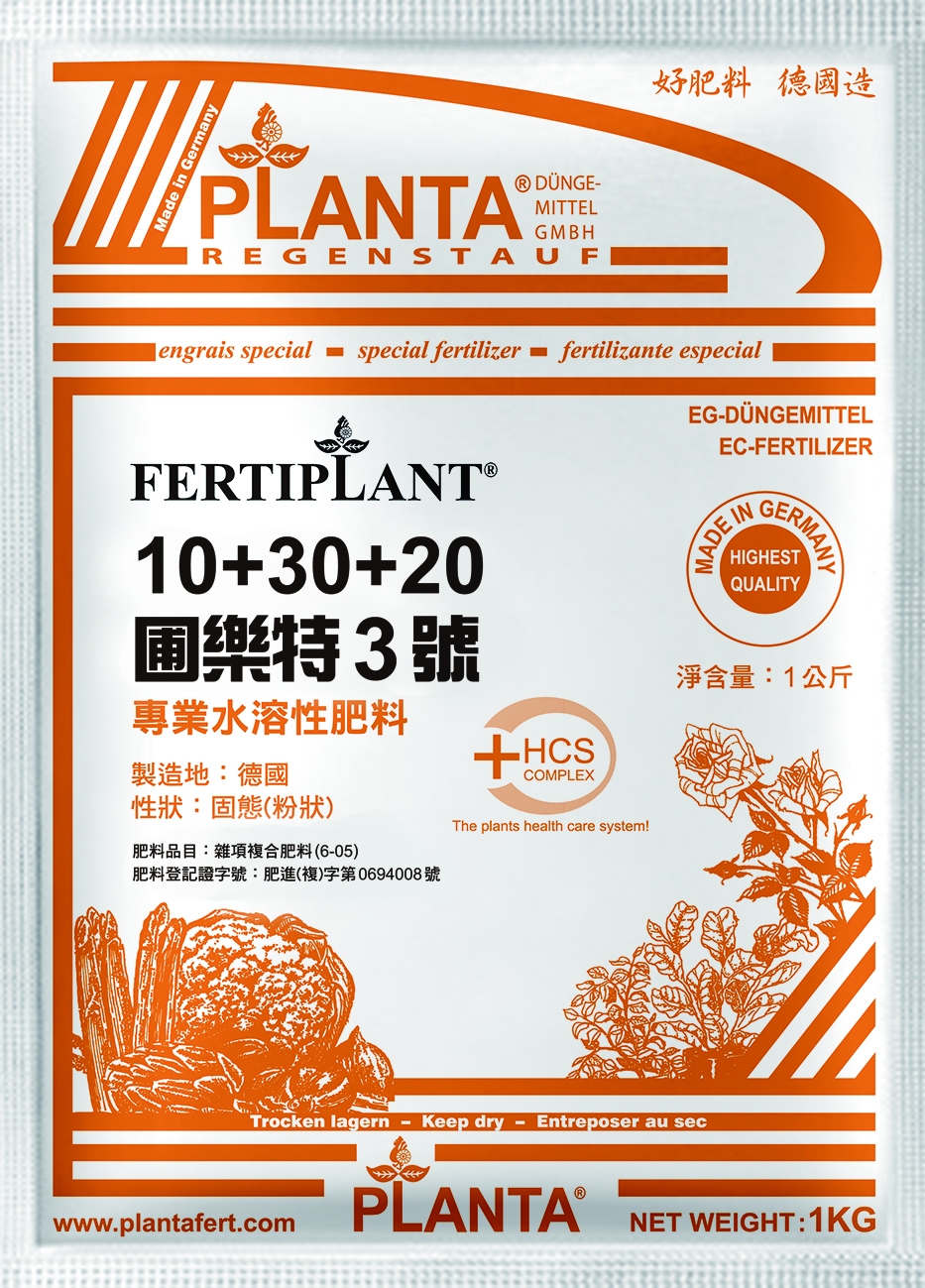 | 圃樂特3號 | 10-30-20+TE | 開花專用 | 肥進(微)字第0776130號 |