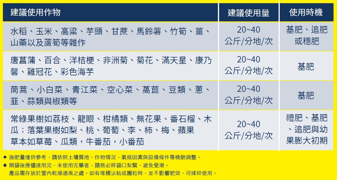 | 產品名稱 | 肥證字號 | 成分配比 | 登記成分 |